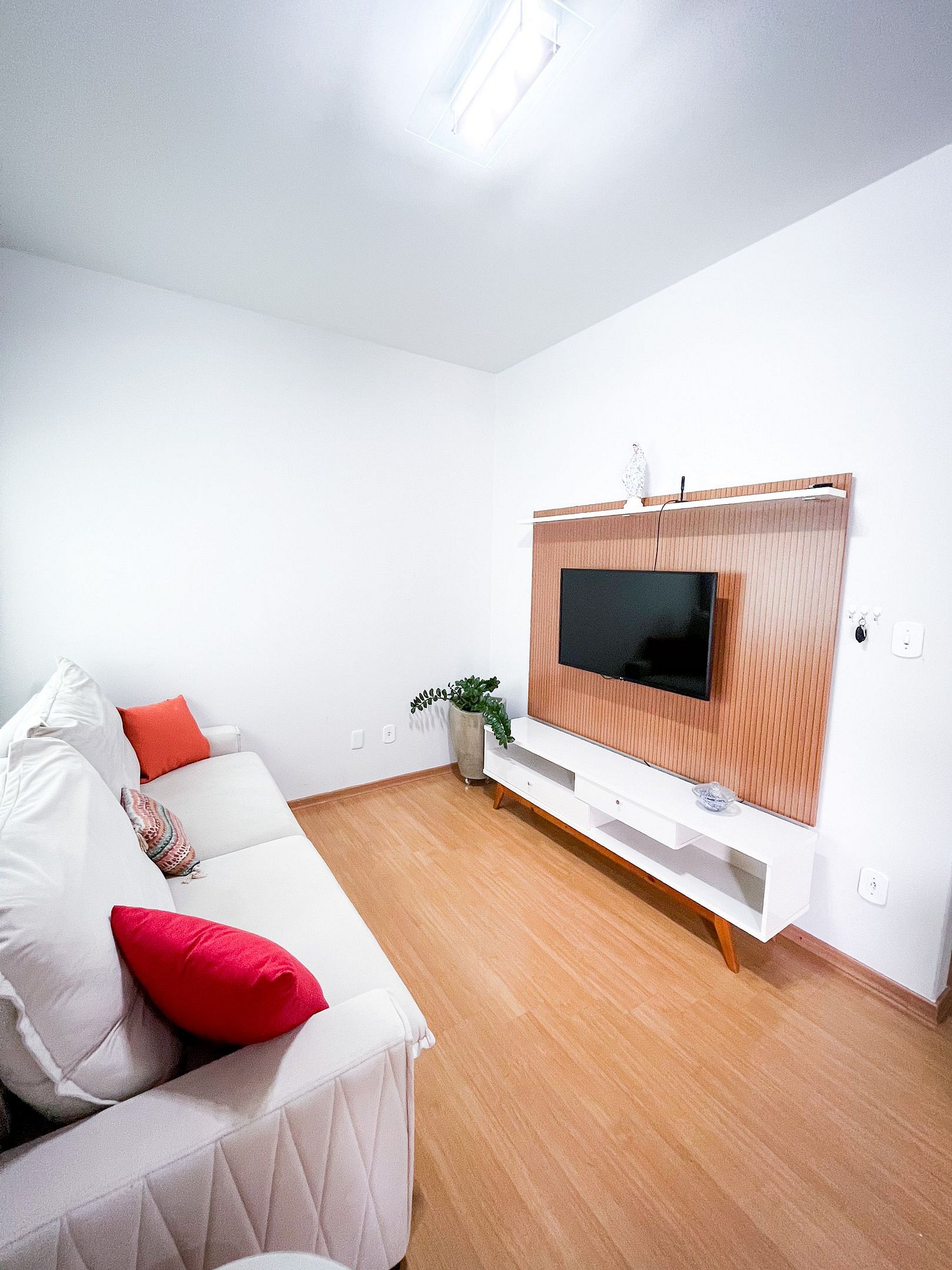 O apartamento é cuidadosamente planejado para oferecer funcionalidade e aconchego: conta com 1 suíte com varanda, 1 quarto adicional, 1 banheiro social, sala e copa integradas, cozinha completa e compacta, bem equipada, e lavanderia interna com máquina de lavar roupas.