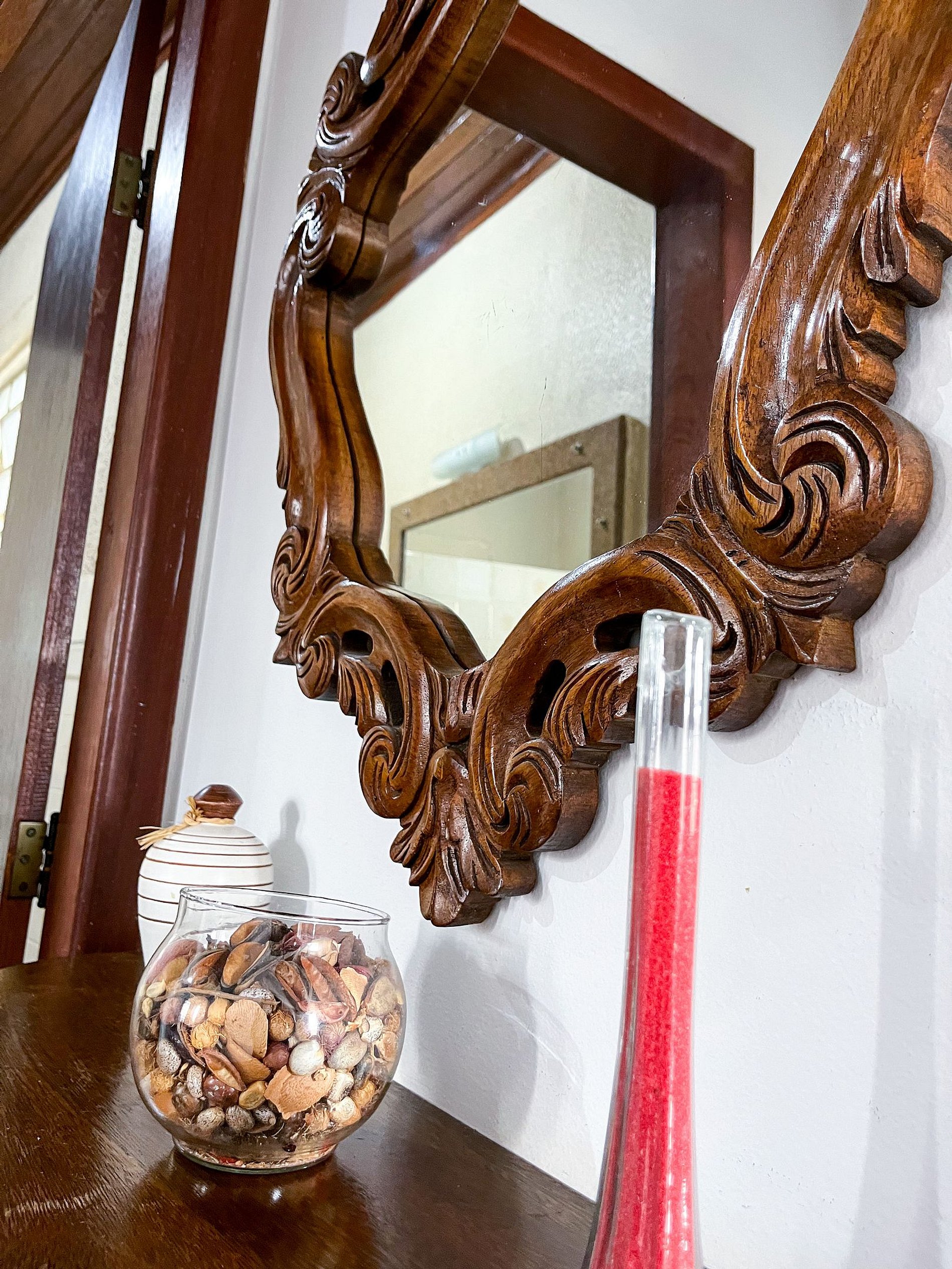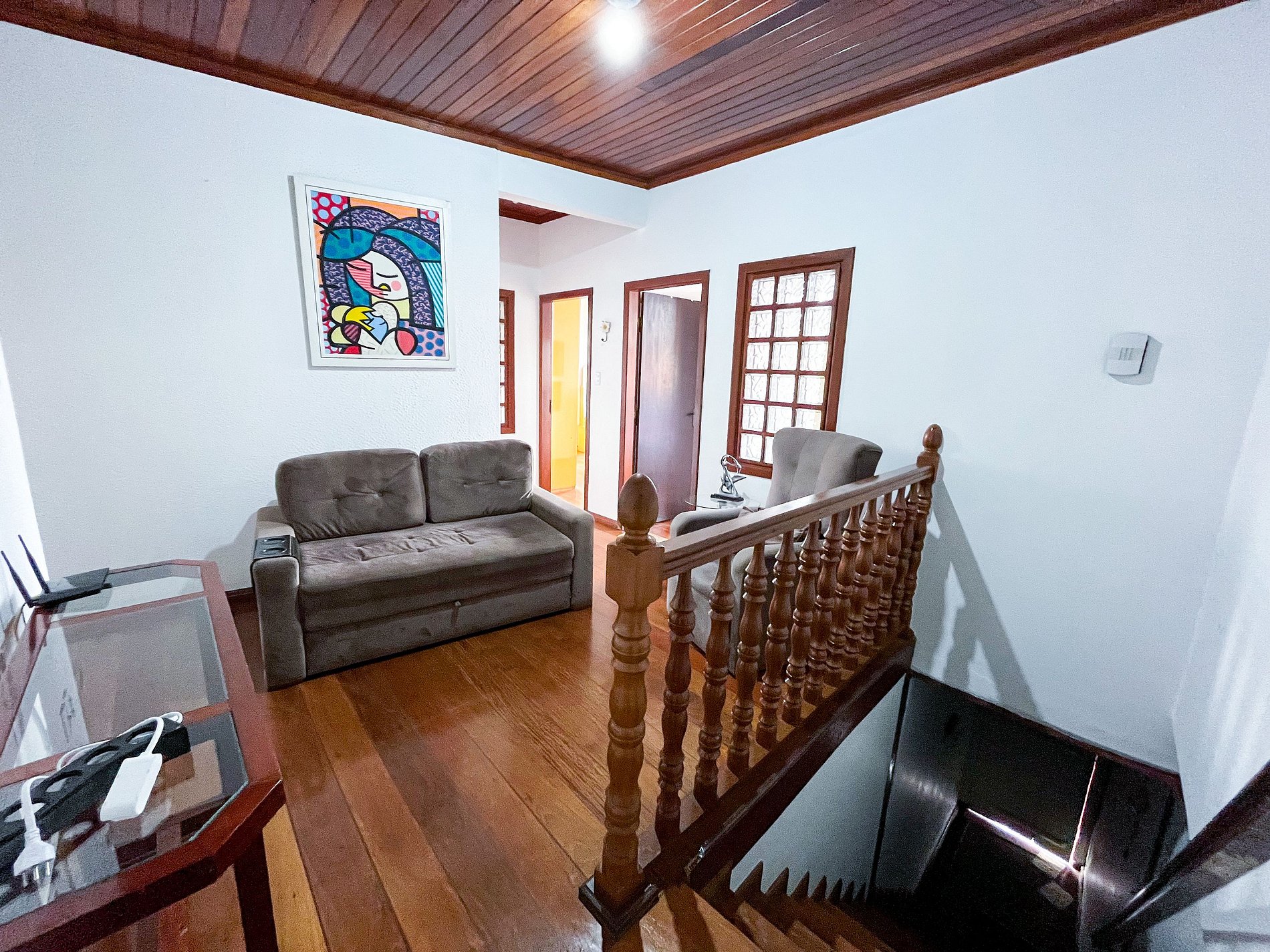 A decoração respeita os traços coloniais originais, com mobiliário cuidadosamente escolhido para manter a atmosfera histórica, sem abrir mão do conforto para o dia a dia.