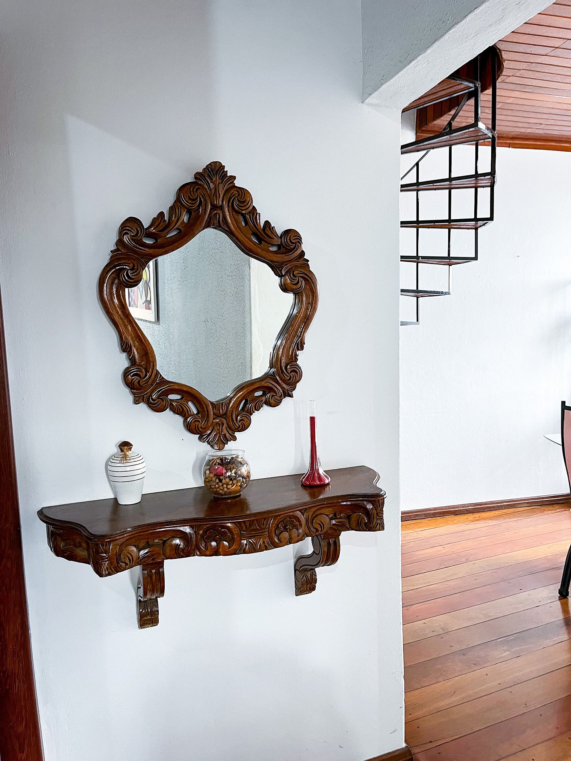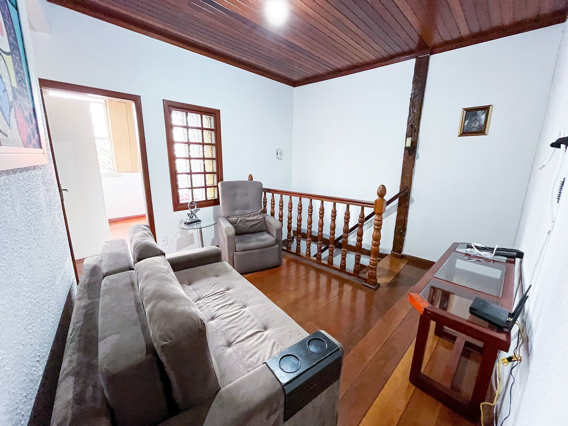 A decoração respeita os traços coloniais originais, com mobiliário cuidadosamente escolhido para manter a atmosfera histórica, sem abrir mão do conforto para o dia a dia.