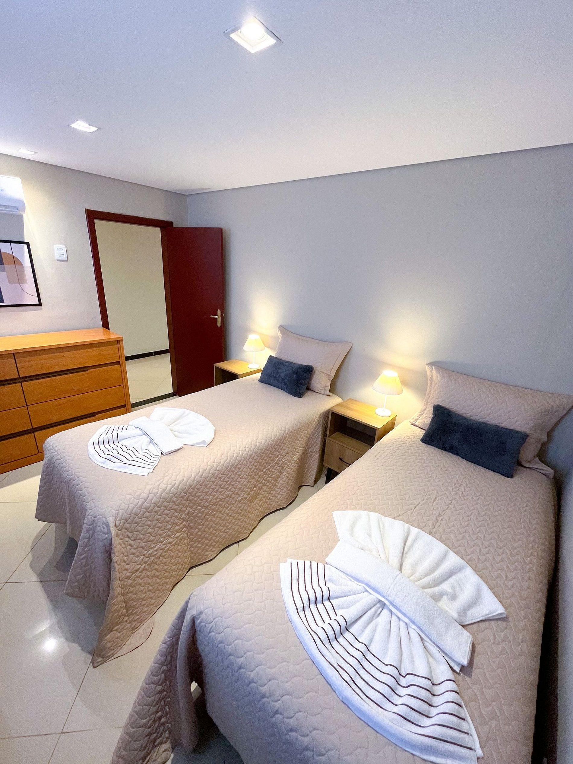 02 quartos com 02 camas box de solteiro cada quarto (adaptáveis para casal).