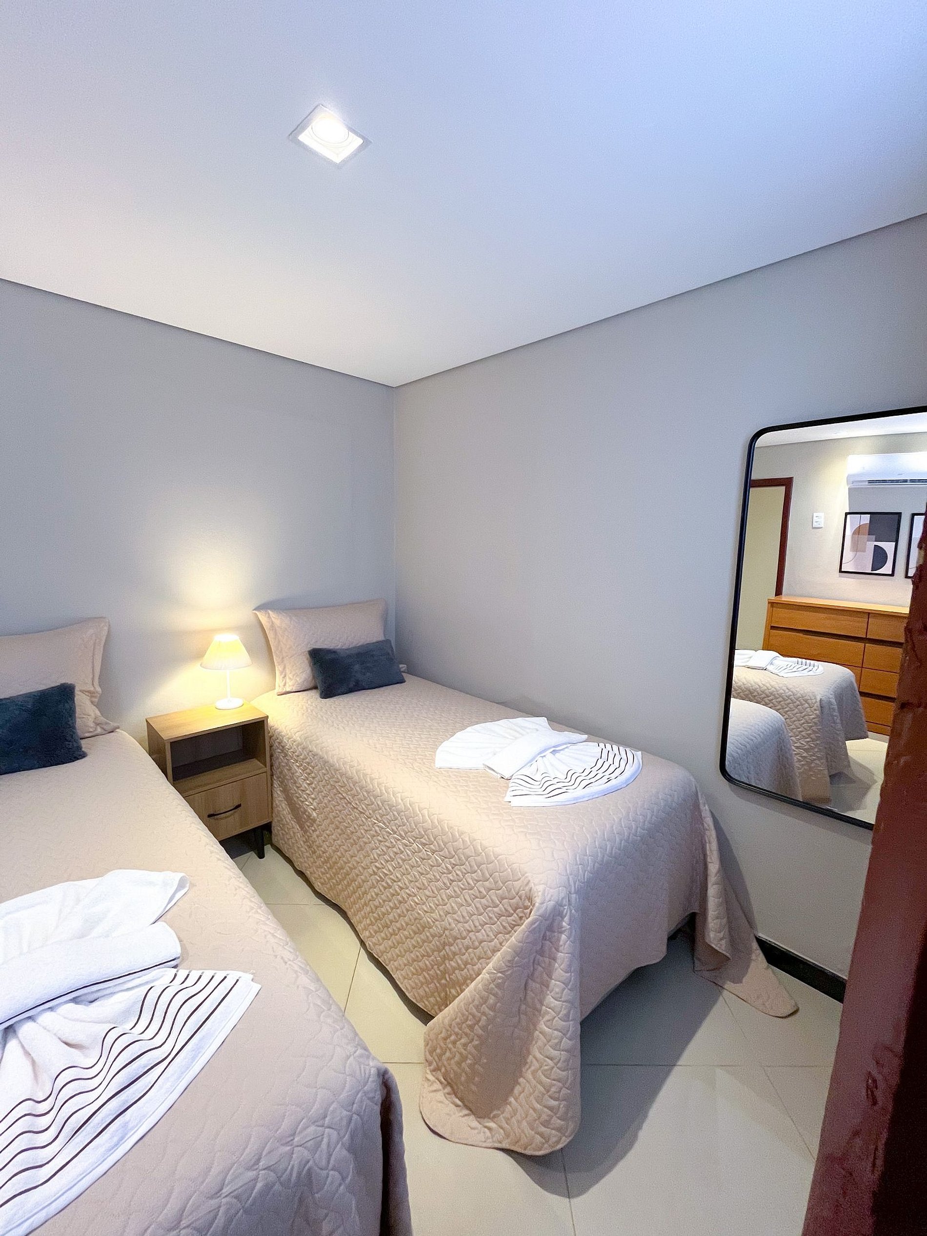 Ar-condicionado em ambos os quartos.