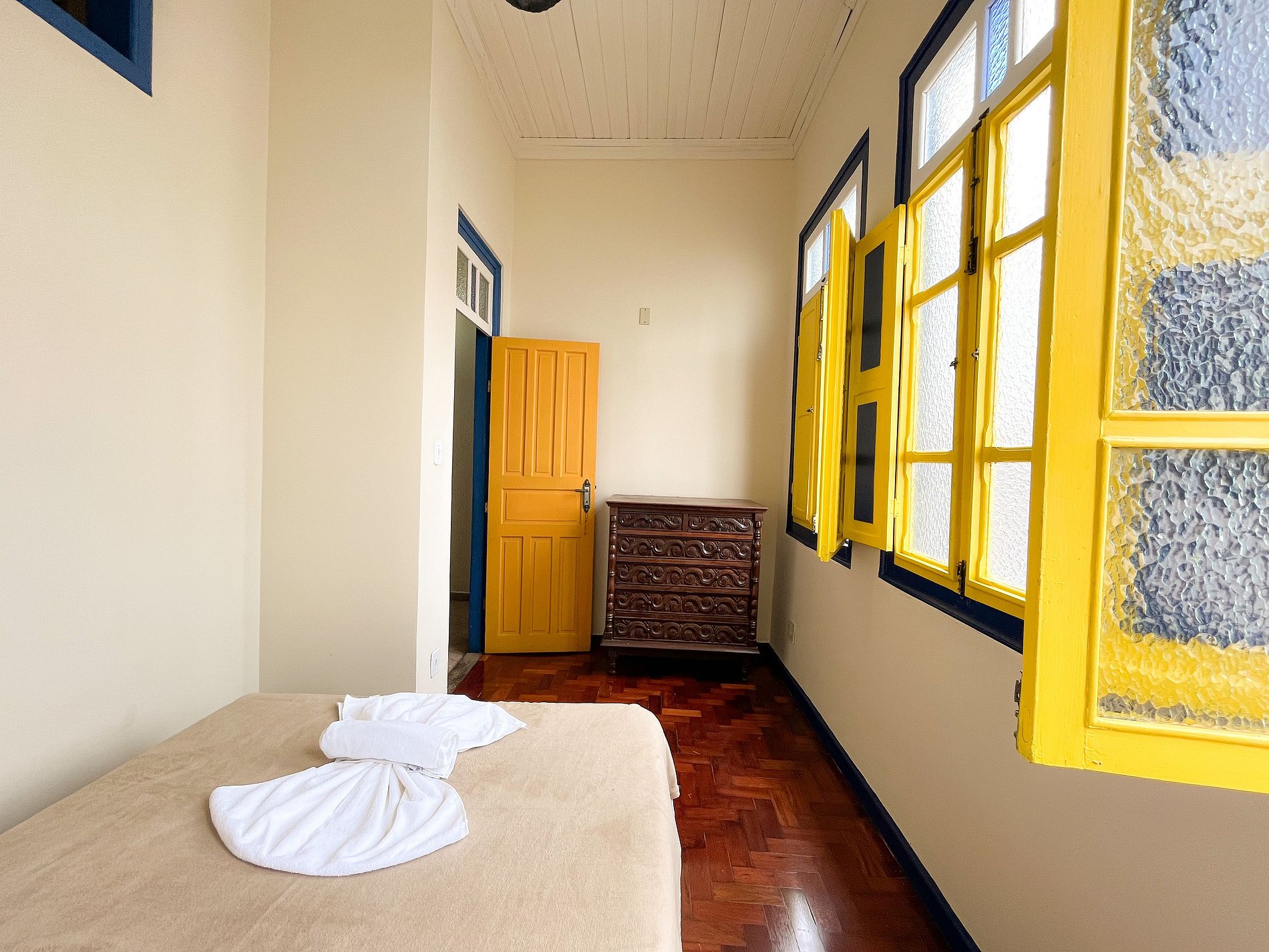 Esta é uma casa com estrutura colonial original. Evite arrastar móveis ou apoiar objetos pesados em superfícies antigas.