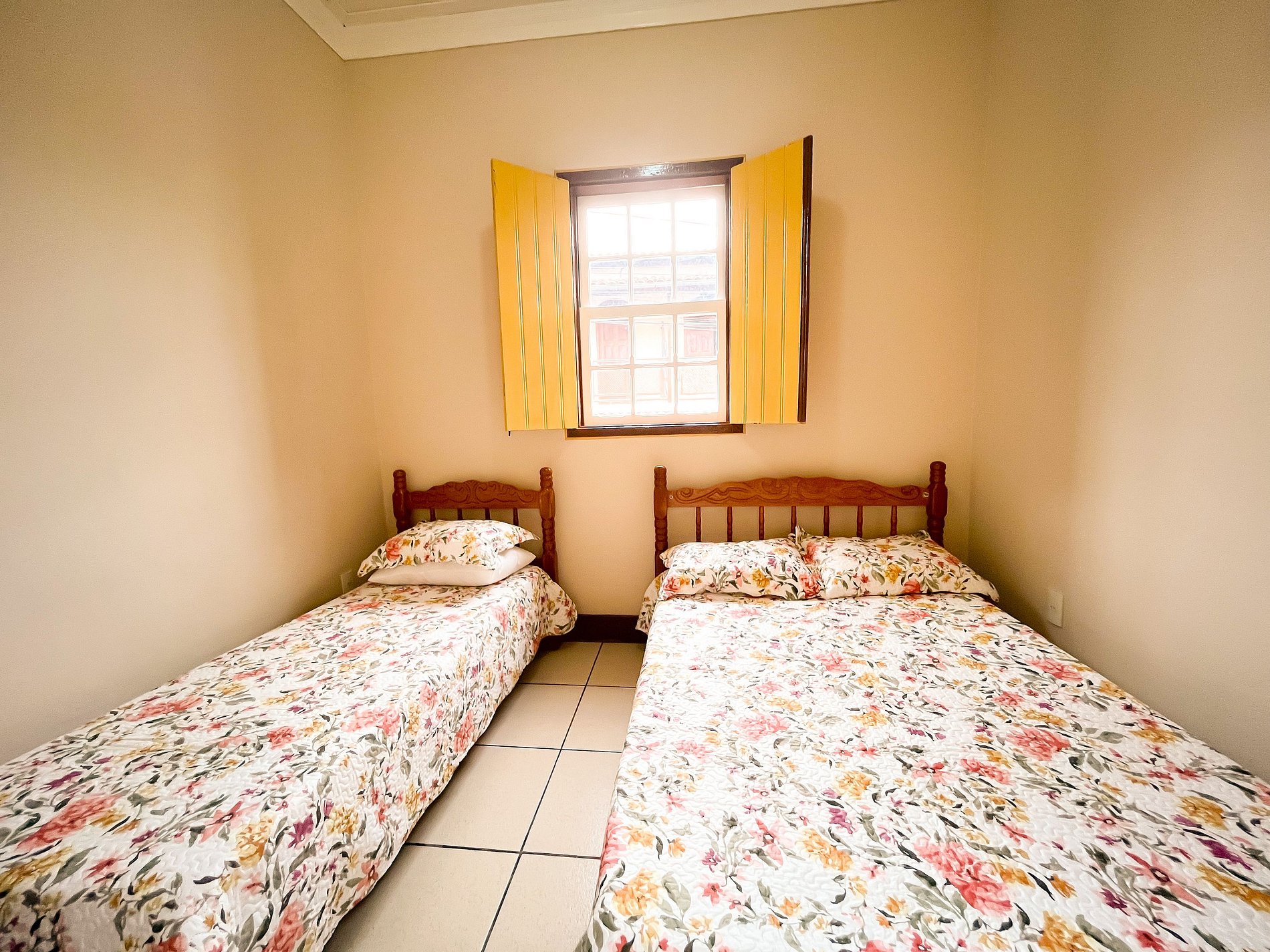 Quarto 05: Um quarto versátil com 02 camas de solteiroPara grupos maiores, a casa também oferece dois colchões extras.