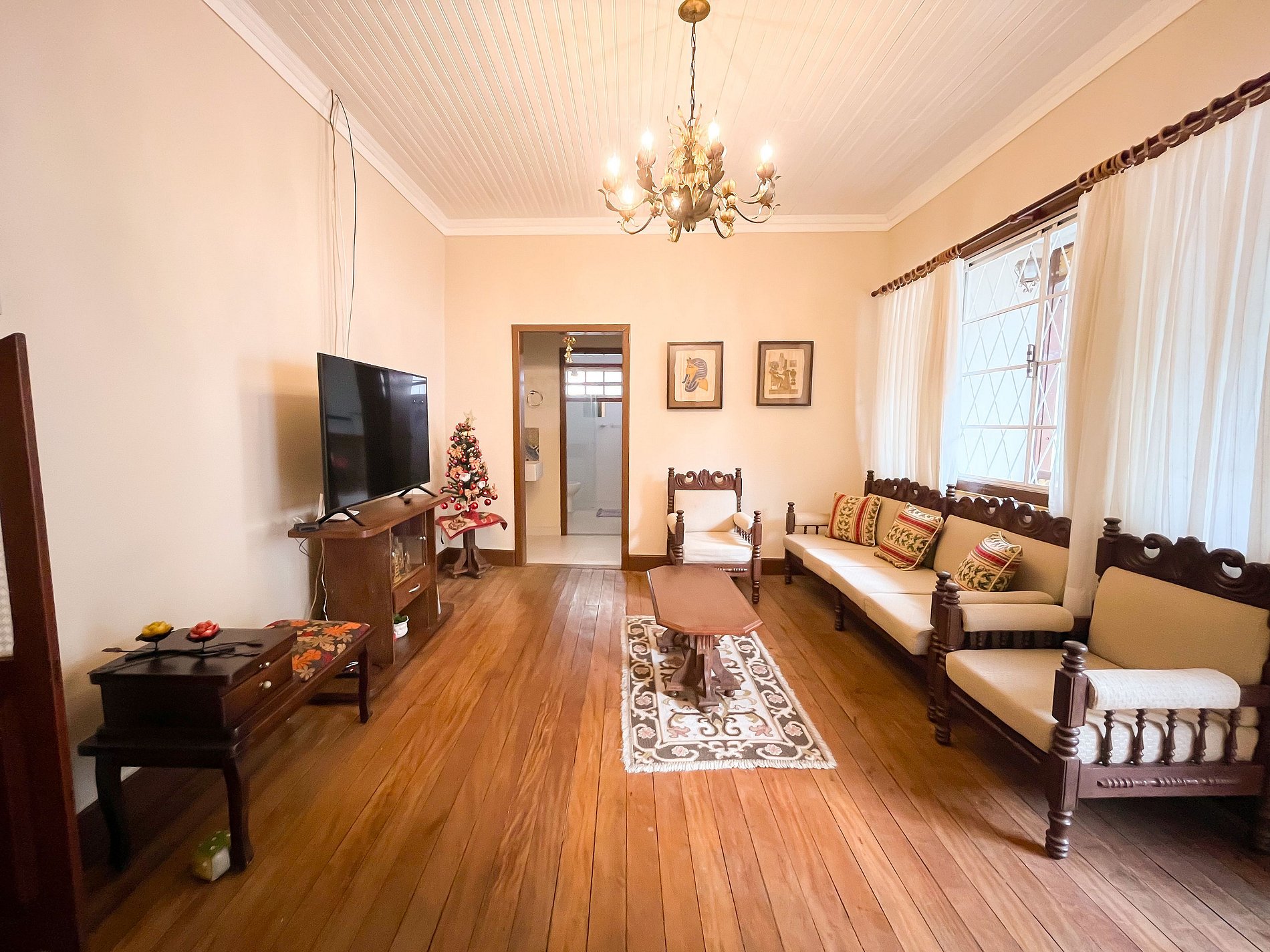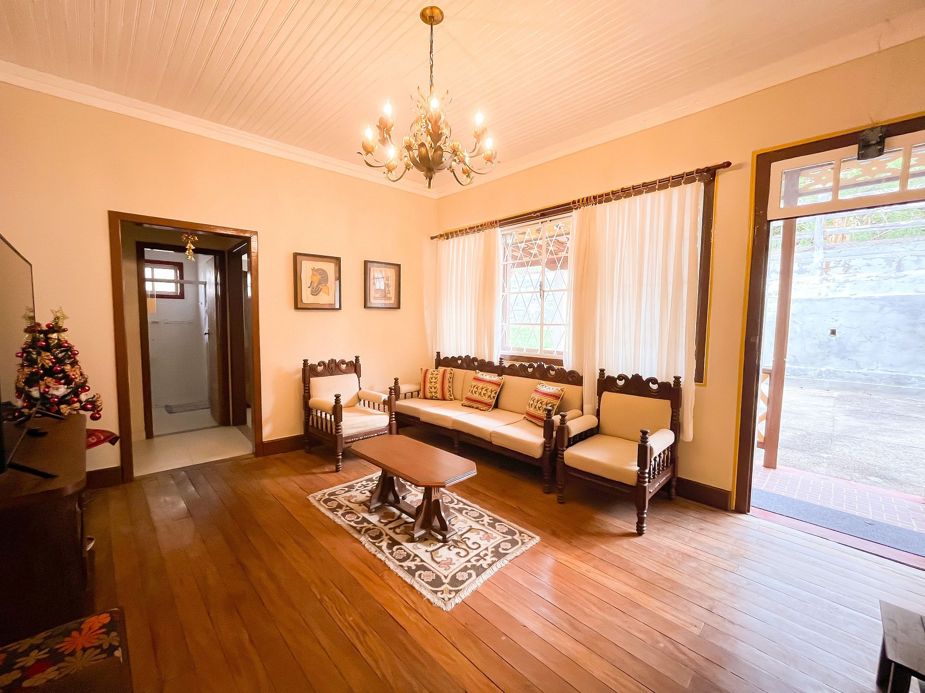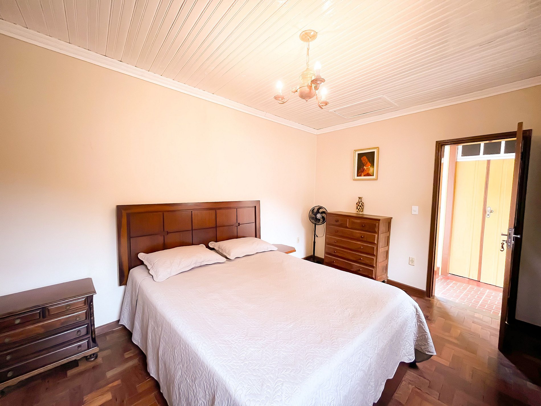 Com cinco quartos bem distribuídos, o casarão oferece: